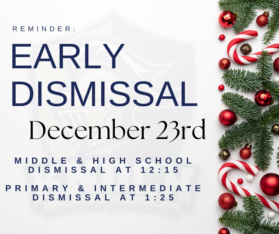 On Tuesday, December 23rd, all schools will have an early dismissal.